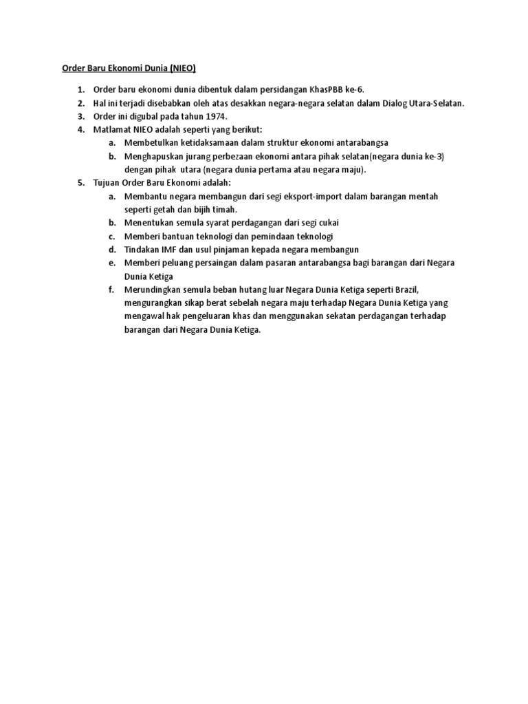 Dapat menghapuskan pengenalan kaum pencapaian dasar ekonomi baru. Inilah mula berdirinya order baru pascaperang yang berdasarkan nilai inti kebebasan yang dipionirkan oleh amerika serikat. Membetulkan ketidaksamaan dalam struktur ekonomi antarabangsa b. Ekonomi dunia bisa tumbuh tinggi jika perempuan diberi kesempatan. mewujudkan upah yang lebih tinggi bagi meningkatkan produktiviti penggunaan kemahiran dan.