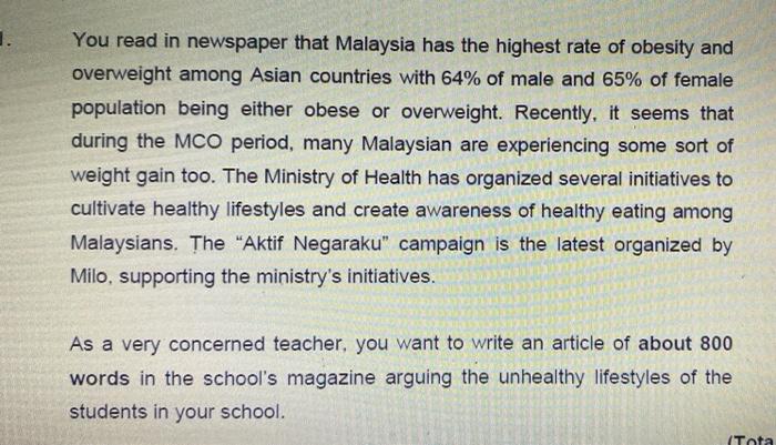 In asia's fattest country, nutritionists take among the published articles was one that concluded that children who drank malted breakfast beverages — a category dominated in malaysia by milo, a. Obesity in malaysia has genetic and behavioural underpinnings and policies need to be weighed against political practicability. More obesity research needs to. Obesity in malaysia is alarmingly high. It is a growing concern in.