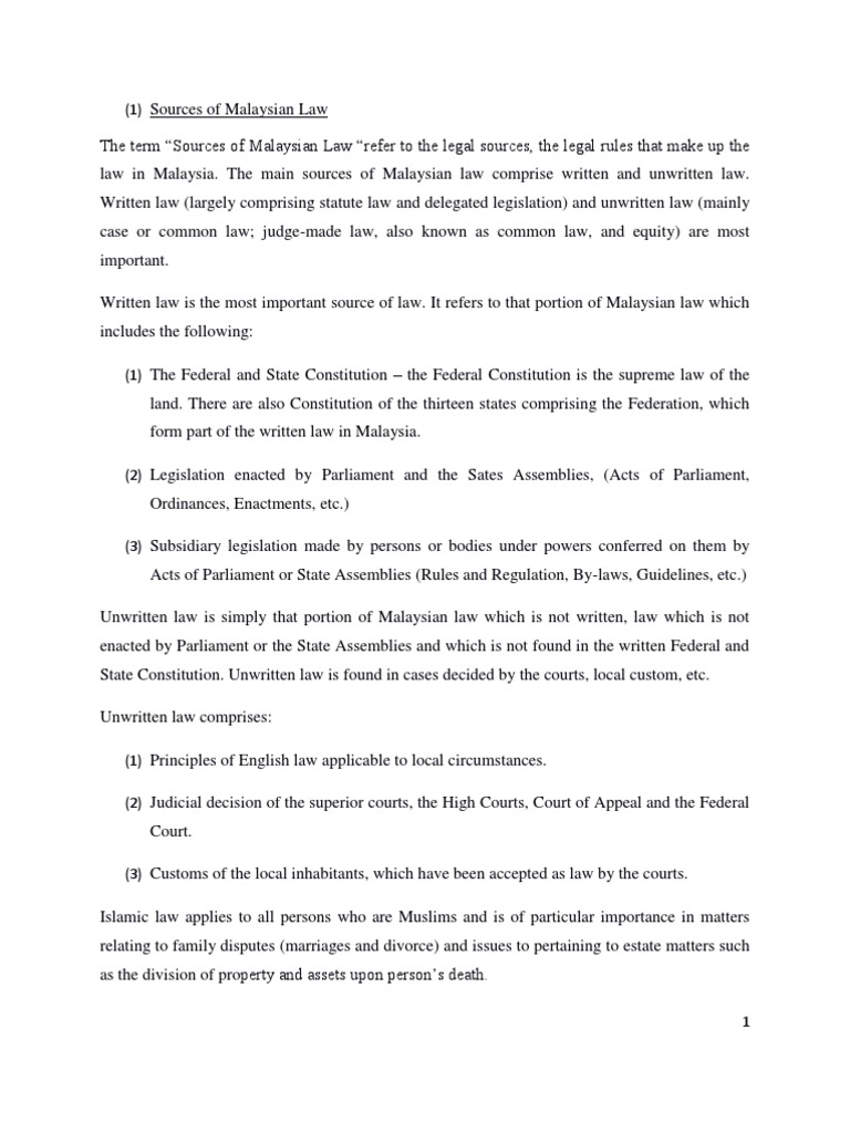 Written Law And Unwritten Law In Malaysia : Question 1 laws in malaysia are categorized into written and unwritten laws.