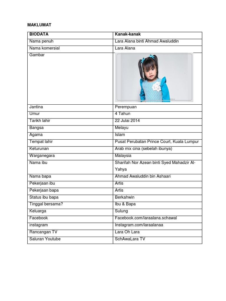 Three year old malaysian child star to start paying taxes. Internet sensation and social media marketing personality who became known in instagram as penglipur lara with. Selepas dibukakan akaun instagram (yang sudah mencecah lebih 200 ribu pengikut), kini lara alana telah mempunyai akaun facebook. She has also garnered an impressive following on. She starred in her own reality show.