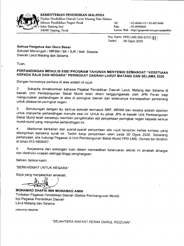 Bahasa melayu (m), pejabat pendidikan daerah kinta utara di talian 05 254 7472 atau 013 5307712.