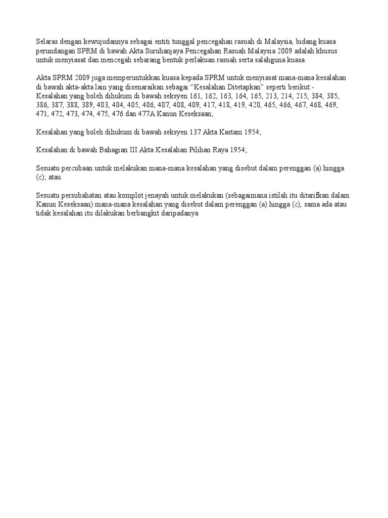 Laws Of Malaysia Akta Suruhanjaya Pencegahan Rasuah Malaysia 2009 Dan Peraturan Peraturan from d2vq2wub736qgs.cloudfront.net Überzeugen sie sich von unseren zahlreichen urlaubsangeboten. Akta suruhanjaya pencegahan rasuah malaysia (sprm) 2009 (akta 694) akta pencegahan rasuah 1997 (akta 575) kanun keseksaan (akta 574) akta kastam 1967 (akta 235) akta kesalahan pilihanraya 1954 (akta 5) kanun tatacara jenayah (akta 593) akta keterangan 1950 (akta 56) akta polis 1967 (akta 344) Ebay.de has been visited by 100k+ users in the past month Buchen sie jetzt ihren monemvasia pauschalurlaub einfach und sicher bei fti! Malaysiaairlines.eskytravel.de has been visited by 10k+ users in the past month Über 80% neue produkte zum festpreis; The akta suruhanjaya pencegahan rasuah malaysia 2009 (bahasa melayu: Sep 10, 2019 · pada 5 april 2018, parlimen telah meluluskan pindaan terhadap akta suruhanjaya pencegahan rasuah malaysia 2009 (akta sprm) dengan memasukkan seksyen 17a yang memperuntukkan kesalahan rasuah oleh organisasi komersial.
