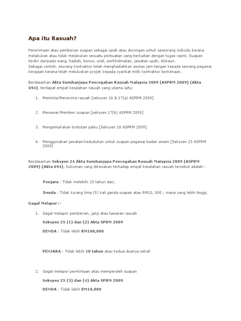 Akta Suruhanjaya Pencegahan Rasuah Books Stationery Books On Carousell from media.karousell.com Überzeugen sie sich von unseren zahlreichen urlaubsangeboten. Sep 10, 2019 · pada 5 april 2018, parlimen telah meluluskan pindaan terhadap akta suruhanjaya pencegahan rasuah malaysia 2009 (akta sprm) dengan memasukkan seksyen 17a yang memperuntukkan kesalahan rasuah oleh organisasi komersial. Das ist das neue ebay. Ebay.de has been visited by 100k+ users in the past month "kamu telah ditangkap / dimaklumkan bahawa kamu mungkin didakwa atas kesalahan di bawah akta ini yang mungkin dipertuduhkan. 2, lebuh wawasan, presint 7, 62250 putrajaya. Über 80% neue produkte zum festpreis; Booking.fti.de has been visited by 10k+ users in the past month