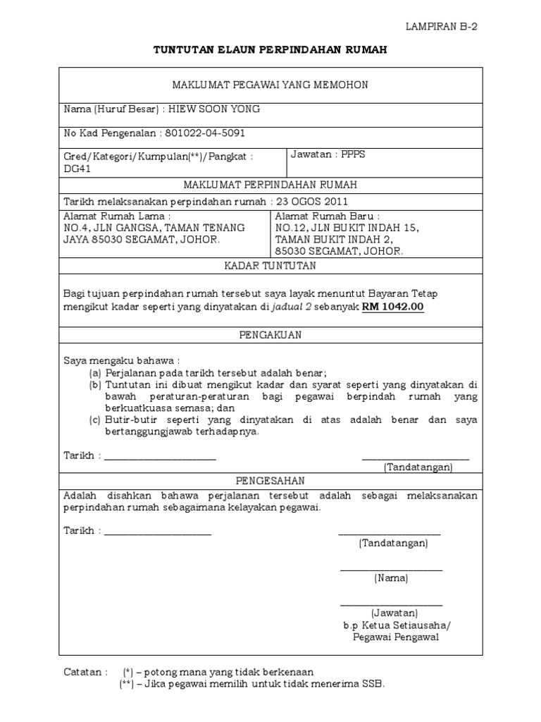 Borang tuntutan perpindahan penjawat awam. Salinan kad pengenalan pemohon (diakui sah) 3. Apa kata anda daftar percuma sebagai pembaca & terima update dari kami terus ke inbox anda. Kadar tuntutan bagi tujuan perpindahan rumah tersebut saya layak menuntut bayaran tetap mengikut kadar seperti yang dinyatakan di jadual 2 sebanyak rm _____ pengakuan. Sebarang permohonan yang lewat tidak akan dipertimbangkan.