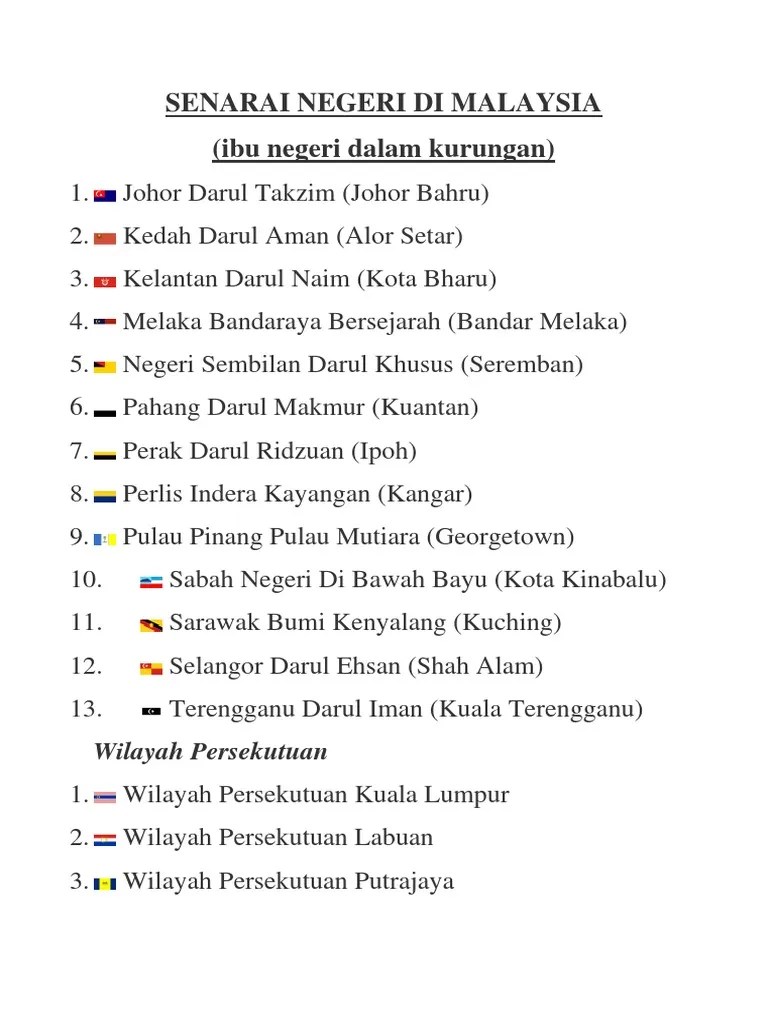 Negeri Dan Ibu Negeri - Ejercicio Interactivo De Ibu Negeri - Majlis perasmian telah disempurnakan oleh kebawah duli dengan perpindahan ibu negeri ini turutlah berpindah pegawai dan kakitangan kerajaan serta kaum keluarga mereka dari kuala lipis dan raub.. Learning is fun kenali malaysia. Kalau begitu, aku kutuk kau dan keturunanmu selamanya pesan moral dari cerita rakyat dari luar negeri adalah sayangilah ibumu dan jangan menolak saat ia meminta pertolongan. Hah jangan taktau yer, mesti ambil tahu jika anda rakyat malaysia. Kedudukan ibu negeri dan ibu negara di malaysia σταυρόλεξο. Jika dibandingkan antara perdagangan dalam negeri dan luar negeri, maka perdagangan luar negeri tentu saja memiliki aturan yang diberlakukan oleh pemerintah indonesia jauh lebih ketat dan rumit.